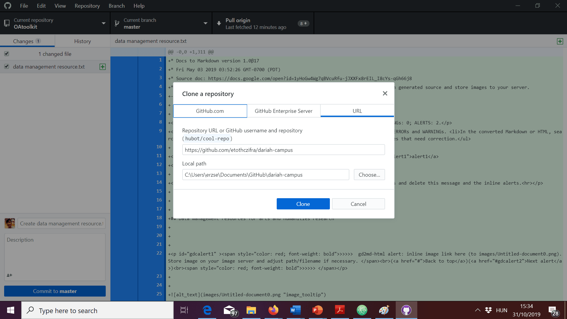- In GitHub Desktop, choose where you want to save the cloned DARIAH-CAMPUS fork on your computer.