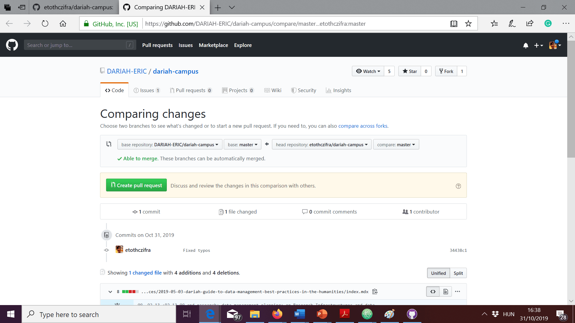 A new window will open in your Browser. Click on the green button “Create pull request”